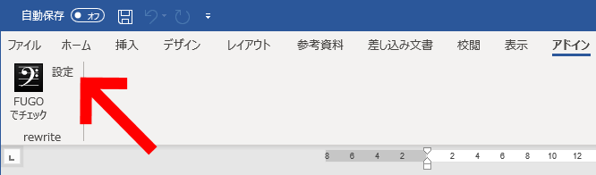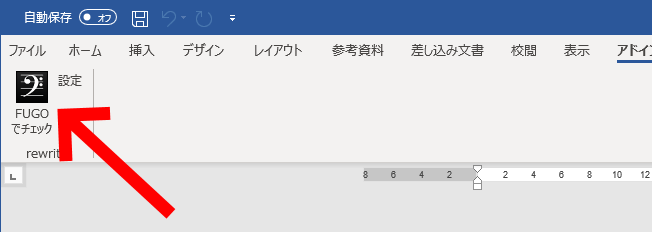 アドインタブに追加された「FUGOでチェック」ボタンをクリックすると、現在WORDで開いているテキストをFUGOでチェックできます。
